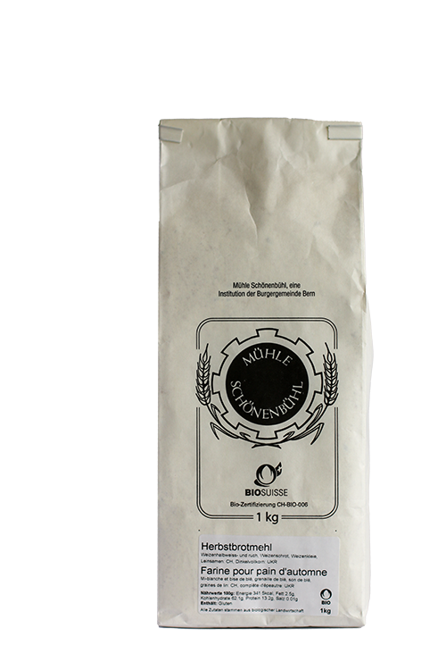 Zusammensetzung: Weizenhalbweiss- und ruchmehl CH, Dinkelvollkorn CH, Weizenschrot CH, Leinsaat CH, Weizenkleie CH