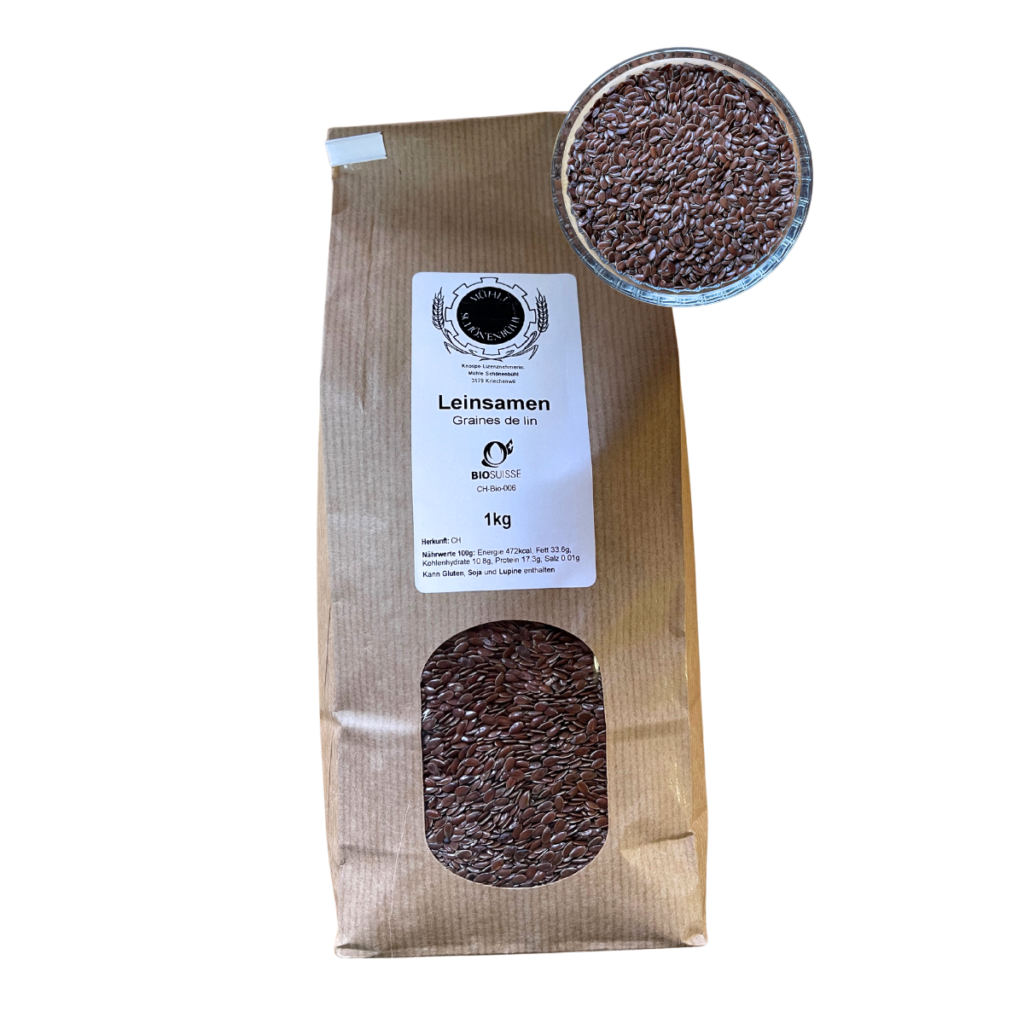 Bio Knospe Leinsamen CH Mühle Schönenbühl vor 8 Jahren Zusammensetzung: Leinsamen CH Nährwerte 100g: Energie 380kcal, Fett 31.5g, Kohlenhydrate 0g, Protein 23.3g, Salz 0.01
