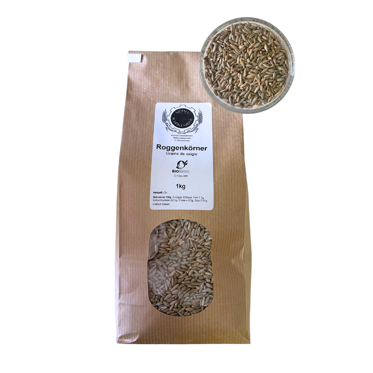 Zusammensetzung: Roggen CH Nährwerte 100g: Energie 296kcal, Fett 1.7g, Kohlenhydrate 60.7g, Protein 10g, Salz 0.01g Enthält: Gluten